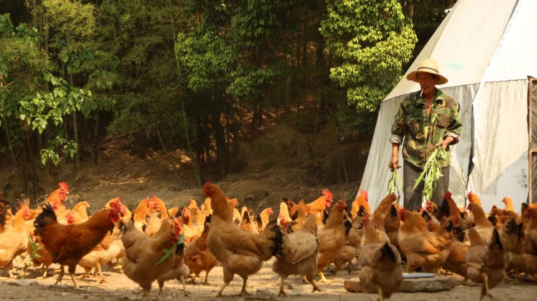 “以前我们都是自己收鸡苗回来养。”老孙说,现在的鸡苗是从国家级育种中心选育出来的优质品种,由强村共进公司免费提供给养殖户。选育出的优质鸡苗野性足、运动能力强、产肉率高,很适合在进化镇的山林中散养。“村民在半山腰挖笋,往往一回头就能偶遇正在翻土吃虫的土鸡。”赵振祥说。