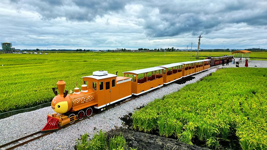 乘小火车,在稻海前行