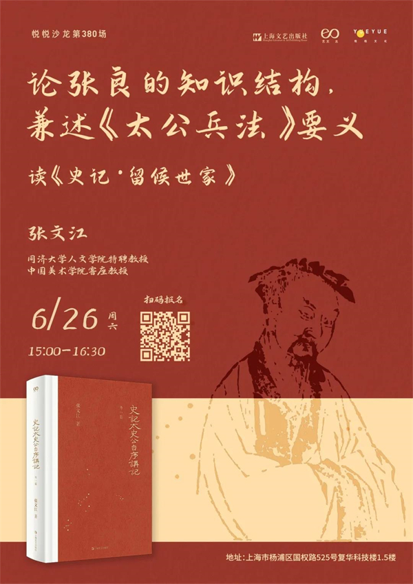 本场讲座,嘉宾张文江教授将通过解析《史记·留侯世家》的相关内容,探讨西汉第一功臣张良的知识结构,兼述《太公兵法》的流传及其要义,理解圯上老父不言之教的内容。