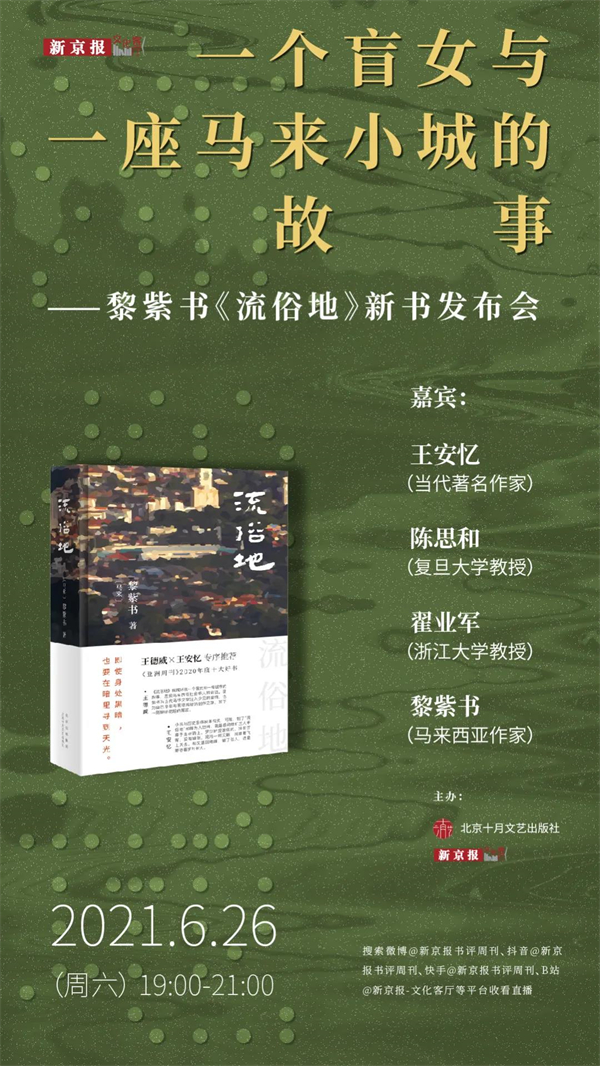 近年来,马来西亚华语文学(简称“马华文学”),逐渐走进了我们的视野。本场活动的主角、《流俗地》的作者黎紫书,通过怪诞、细腻、写实的故事,以其女性视角,将大问题在穿衣吃饭的细琐日常之间化为晦涩的执念。6月26日,新京报书评周刊·文化客厅联合北京十月文艺出版社,邀请到作家王安忆、复旦大学教授陈思和、浙江大学教授翟业军,以及《流俗地》作者、马来西亚作家黎紫书,一同谈谈马华文学,聊聊一个盲女与一座马来小城的故事……