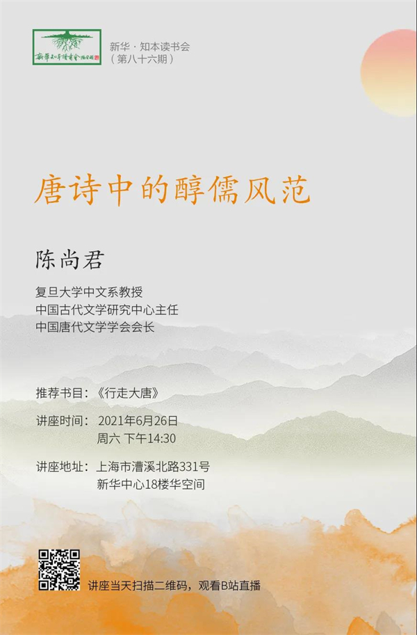 陈尚君教授专治唐宋文学和古典文献学,于唐代文学文献的搜集和考订、唐宋作家生平和著作研究,用力较多,亦从事历史文献学和石刻文献学研究。本次新华·知本读书会特邀陈尚君老师为大家主讲唐诗中的醇儒风范。