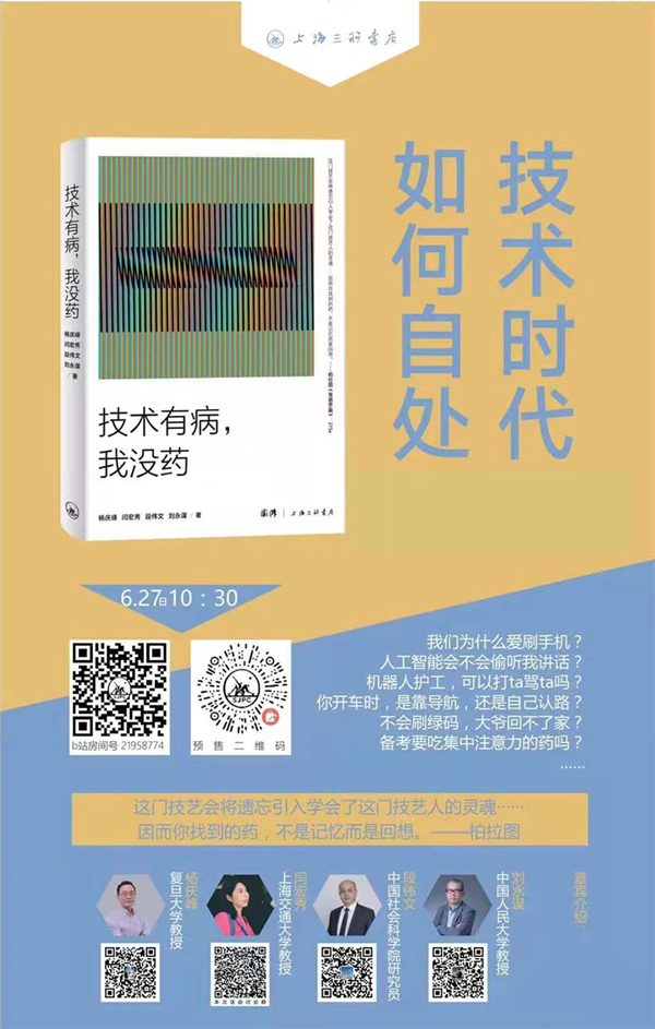 享用技术的后果,还是放弃技术的便利,生活在现代社会中的每个人,恐怕是没有选择权的——技术,代理了种种生活方式。杨庆峰、闫宏秀、段伟文、刘永谋这几位技术哲学的专业人士愿意半正经半调侃地说道说道在技术的未来中的人。他们想了8个主题,写了32篇半命题作文,表达各自相似或相反的观点,互相角力。这组文章,一部分在“澎湃·思想市场”上刊发过,在网络的互联技术之下,拥有100万+的点击率。现在几位作者将这些文章汇成了一本小书。6月27日上午,在山脚下的书店(佛山路店),请听他们的话题:技术时代与人类增强。