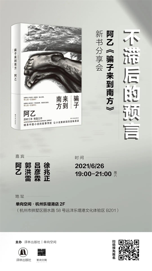 杭州|不滞后的预言——阿乙《骗子来到南方》新书分享会