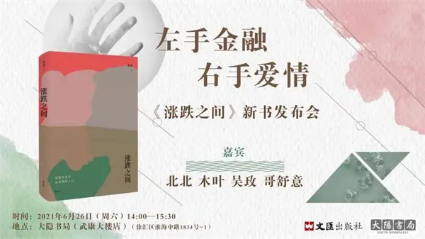 北北的《涨跌之间》从上海世界金融中心的视角出发,描绘了金融市场中的辛酸起伏。6月26日,我们将在大隐书局武康路店举办“左手金融,右手爱情——《涨跌之间》新书分享会”,探讨金融浪潮下,社会生活的新形态。