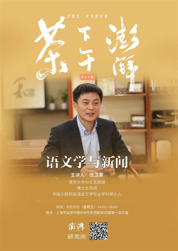 澎湃下午茶,邀请清华大学沈卫荣教授,为大家主讲语文学与新闻。
