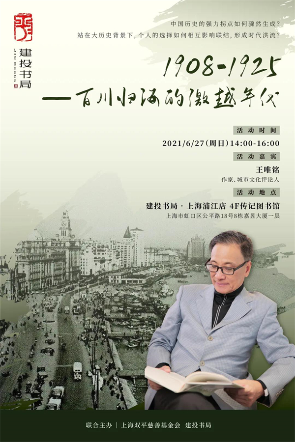 6月27日下午,建投书局联合上海双平慈善基金会邀请到作家、城市文化评论人王唯铭做客建投书局·上海浦江店,揭开1908至1925这一激越年代的历史面貌,描绘变革时代背景下的人物群像,讲述觉醒年代中的思潮演变。