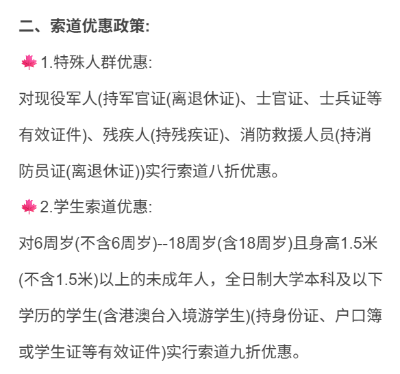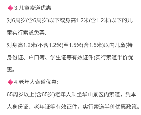 3、华山索道优惠政策