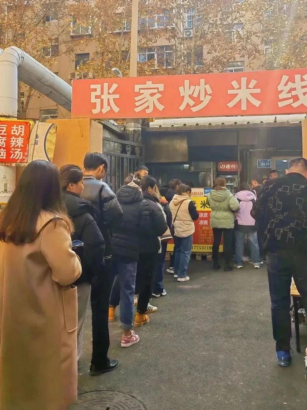 炸鸡柳的小摊前总是长龙,旁边的张家炒米线也是人气王,点一份热乎滚烫的炒米线,搭配着刚买的炸鸡柳,是许多济南老师儿必点的“王炸组合”。