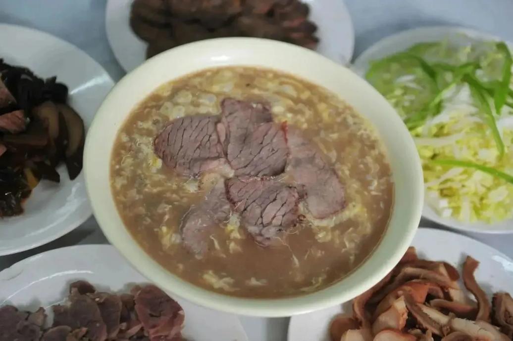 闵众牛肉店店铺不大,但是被收拾得干干净净、整整齐齐。开了20年的糁汤店,老店里的大厨是临沂人,乳白色的汤头配着刚出炉的烧饼,一口下去,“暖到脚趾头”。