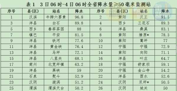 据省气象台今晨发布,昨日10时开始,我省自西向东出现大范围降水天气,部分地方伴有短时暴雨、雷暴大风等强对流天气,3日06时-4日06时全省共有94个区县1628个监测站出现降水,其中26站暴雨,出现在汉中、安康、商洛局地,最大为安康汉滨牛蹄六要素96.8毫米;目前安康地区强降水仍在持续,预计今日9时后强降水趋于减弱。