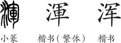 “浑”是形声兼会意字。小篆从水,軍声,軍兼表像军行之意。隶变后楷书写作“渾”。汉字简化后写作“浑”。