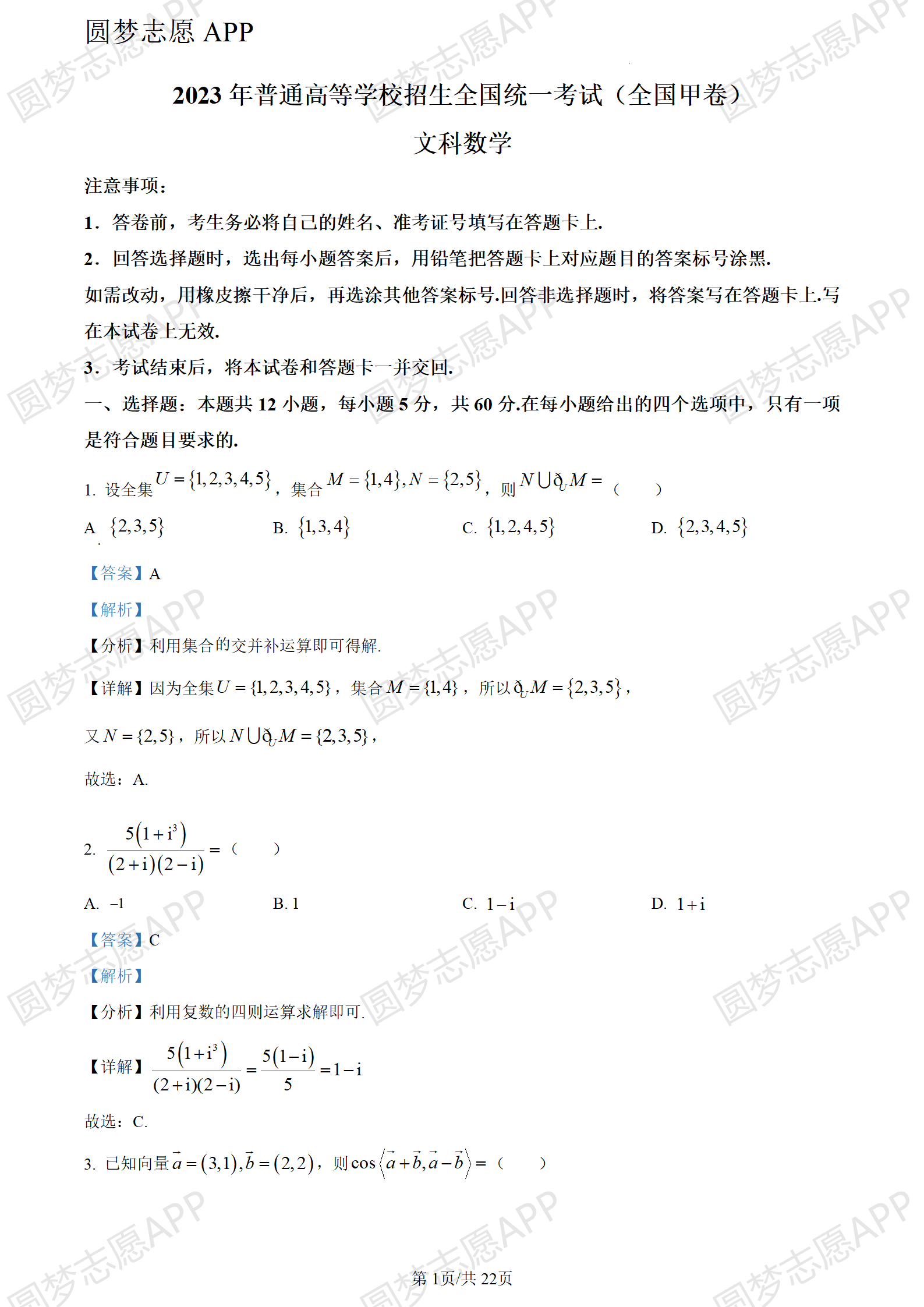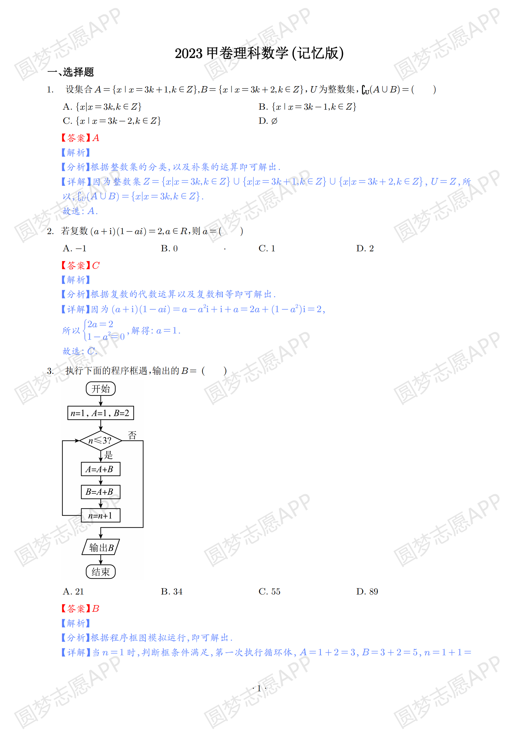 2023年全国甲卷数学真题及答案解析(文理科都有)