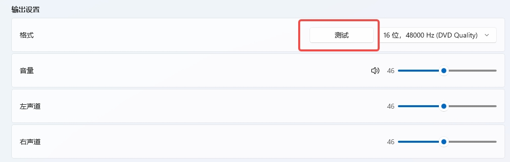 然后点击“测试”,即可检查耳机输出声音是否正常