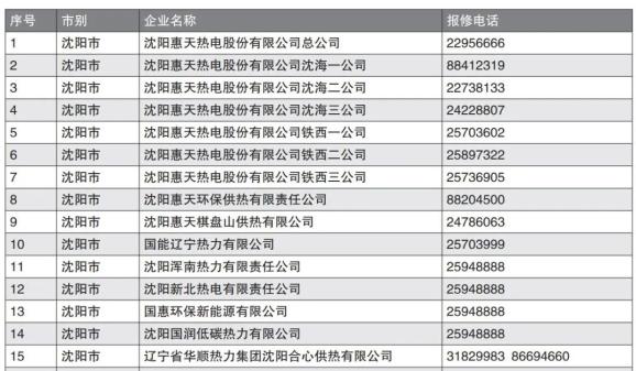 回复【供热】查看沈阳供热管理部门及供热单位公开服务电话
