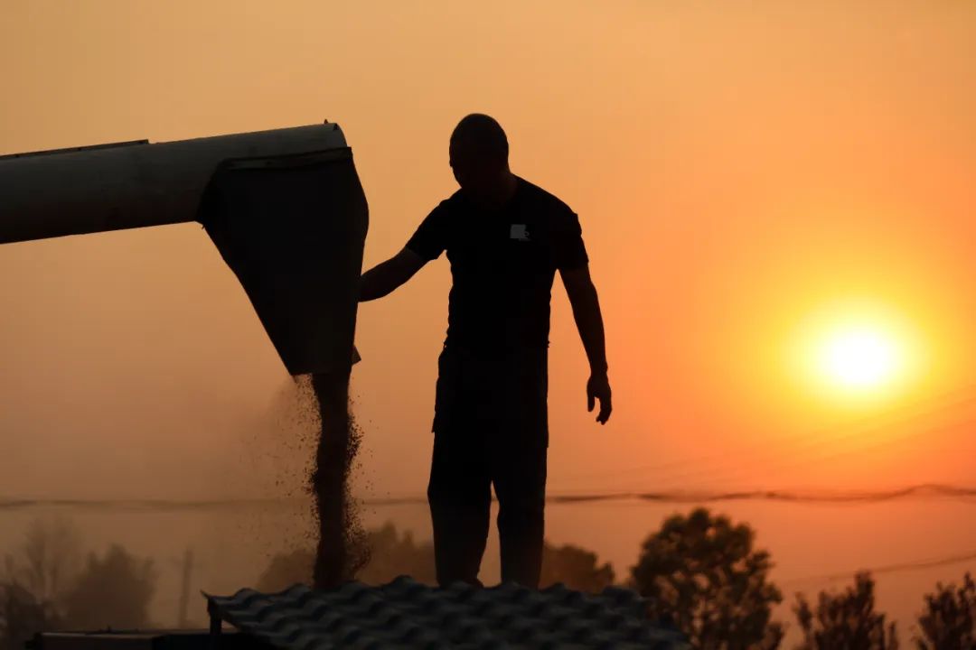 河南省平顶山市宝丰县闹店镇东军营村村民在收获小麦。新华社记者 李嘉南 摄