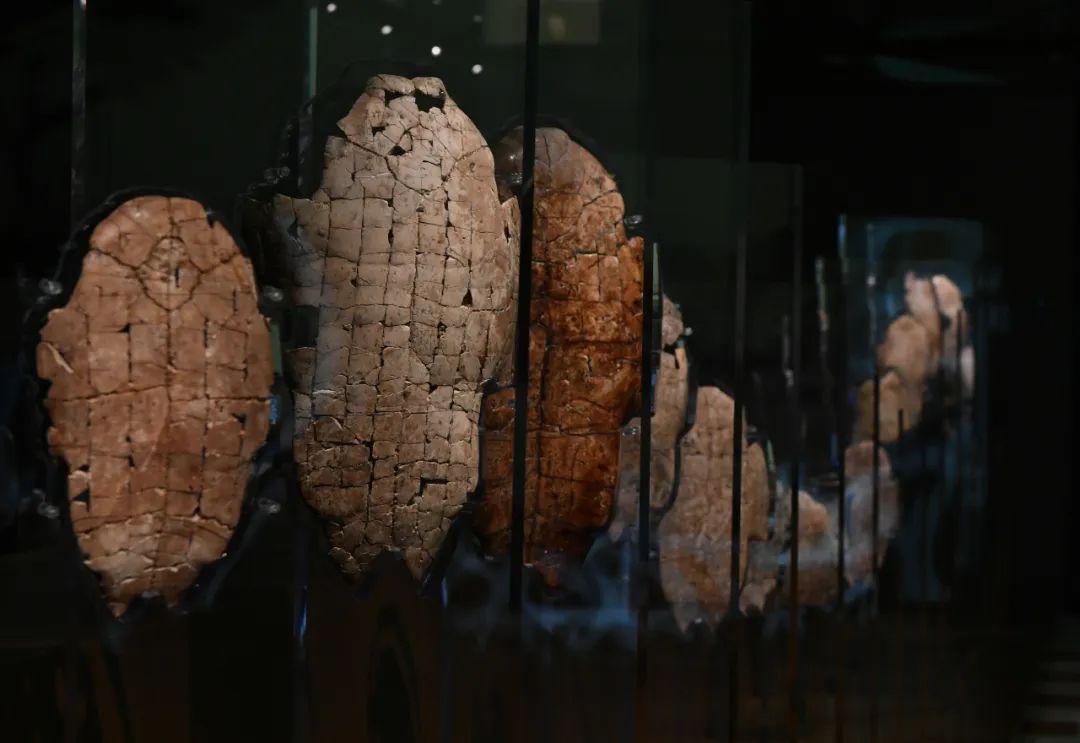 这是在殷墟博物馆新馆拍摄的考古发掘出土的甲骨文骨片。新华社记者 赵鹏 摄