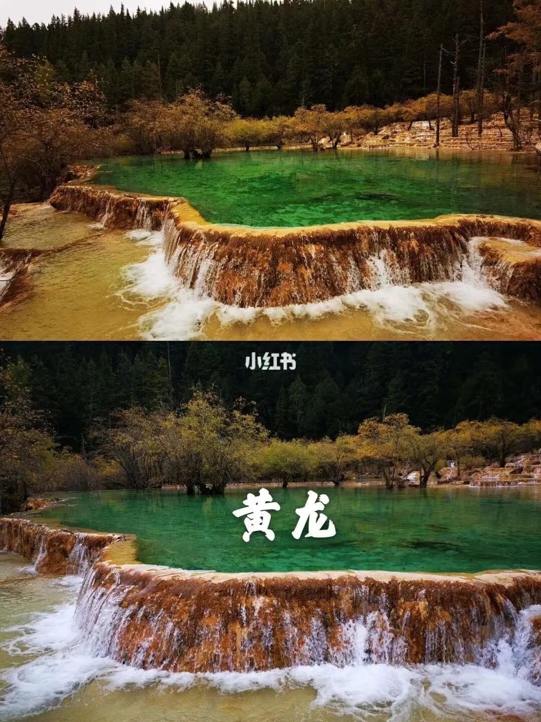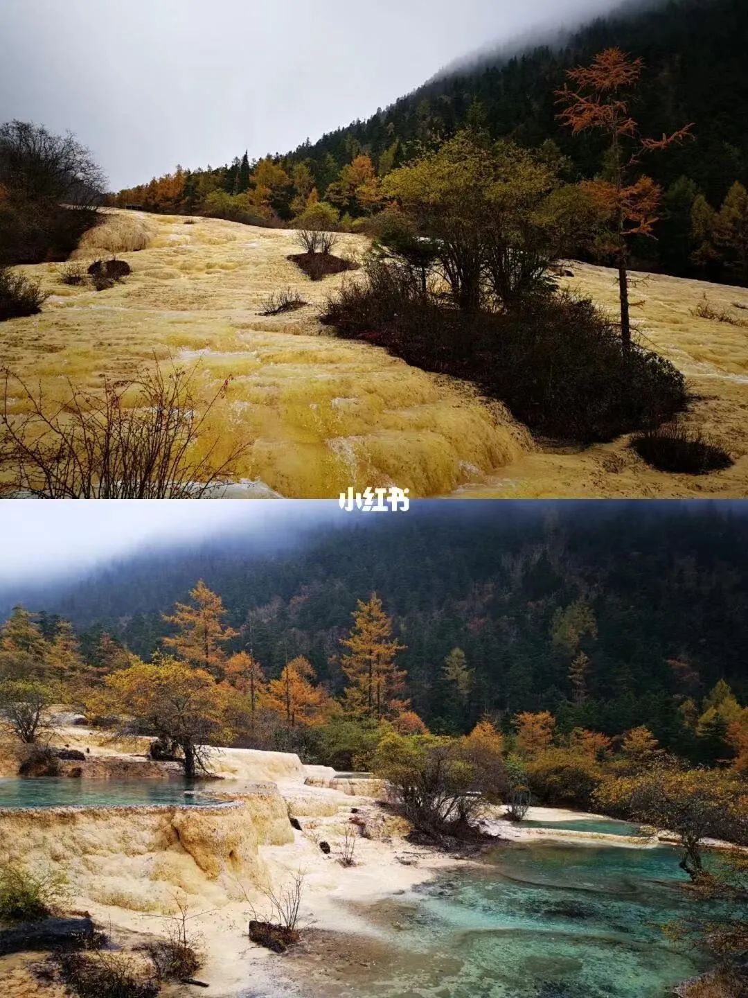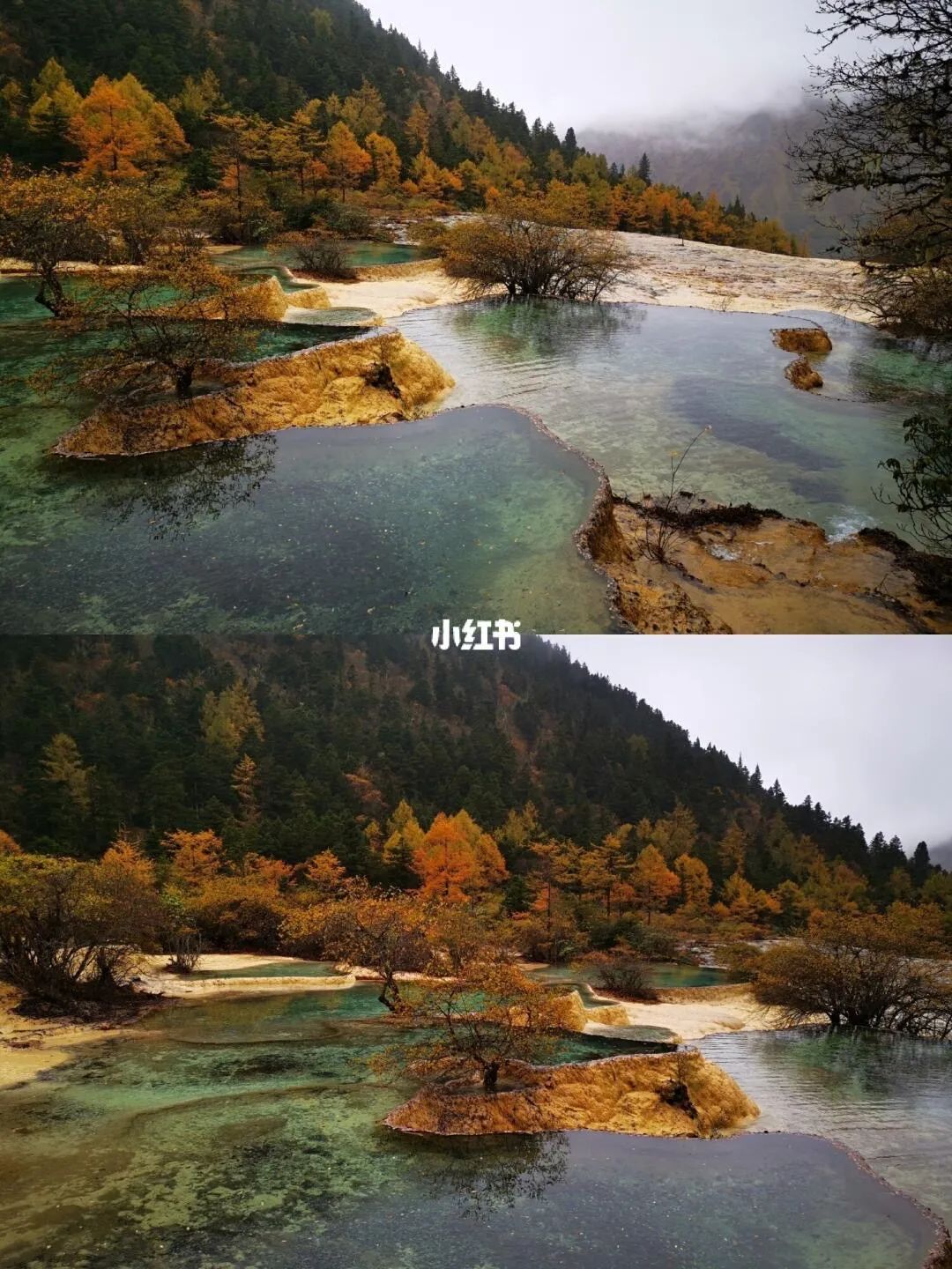 “秋景美不胜收 下山步步是惊喜!!在黄龙让我领略了更为极致的水色”
