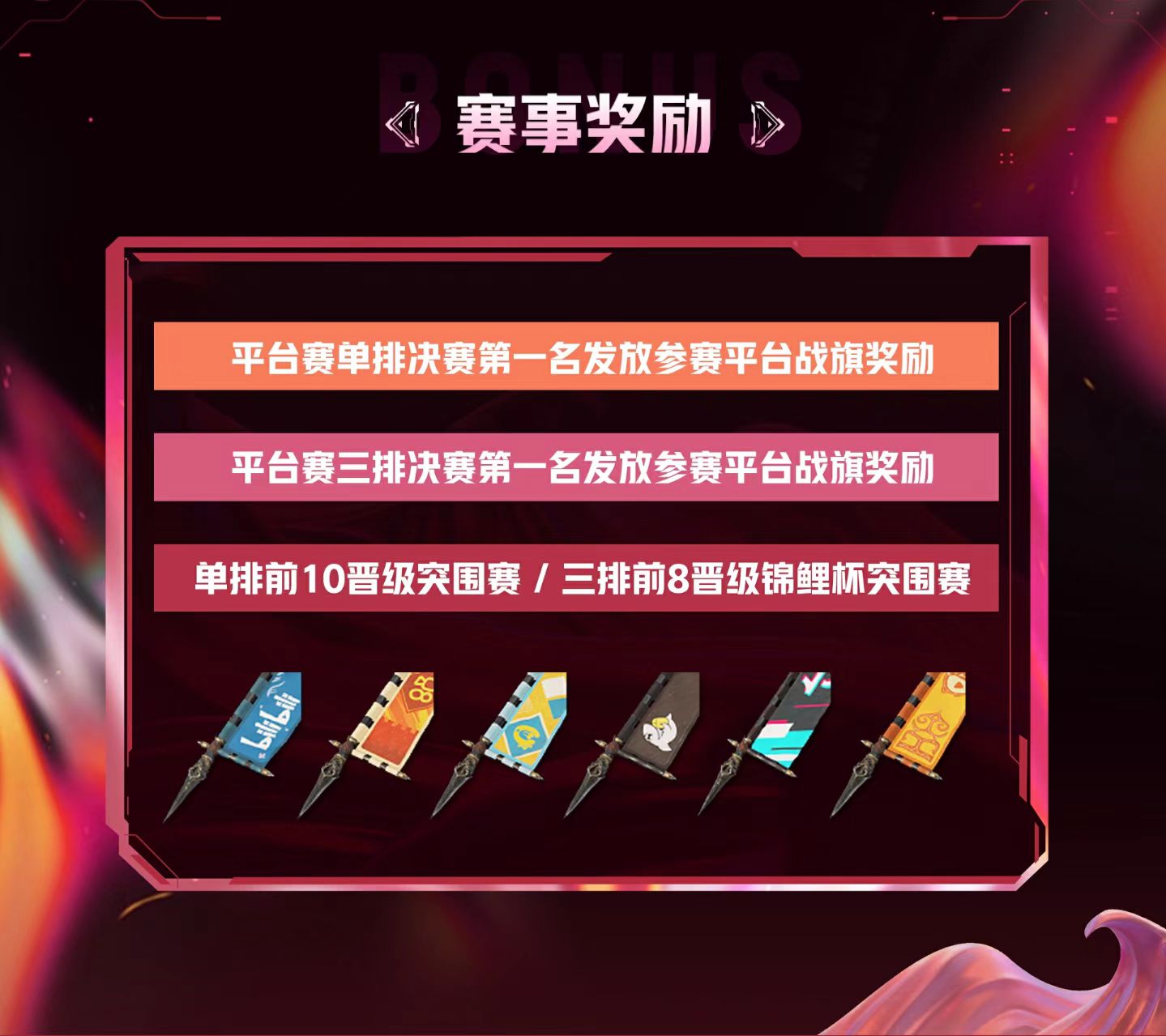参赛选手必须年满18周岁,报名时需要选择参与模式(分为单排模式和三排模式),选手亦可同时参与两种模式。所有参赛选手以个人或队伍的形式报名参与锦鲤杯。