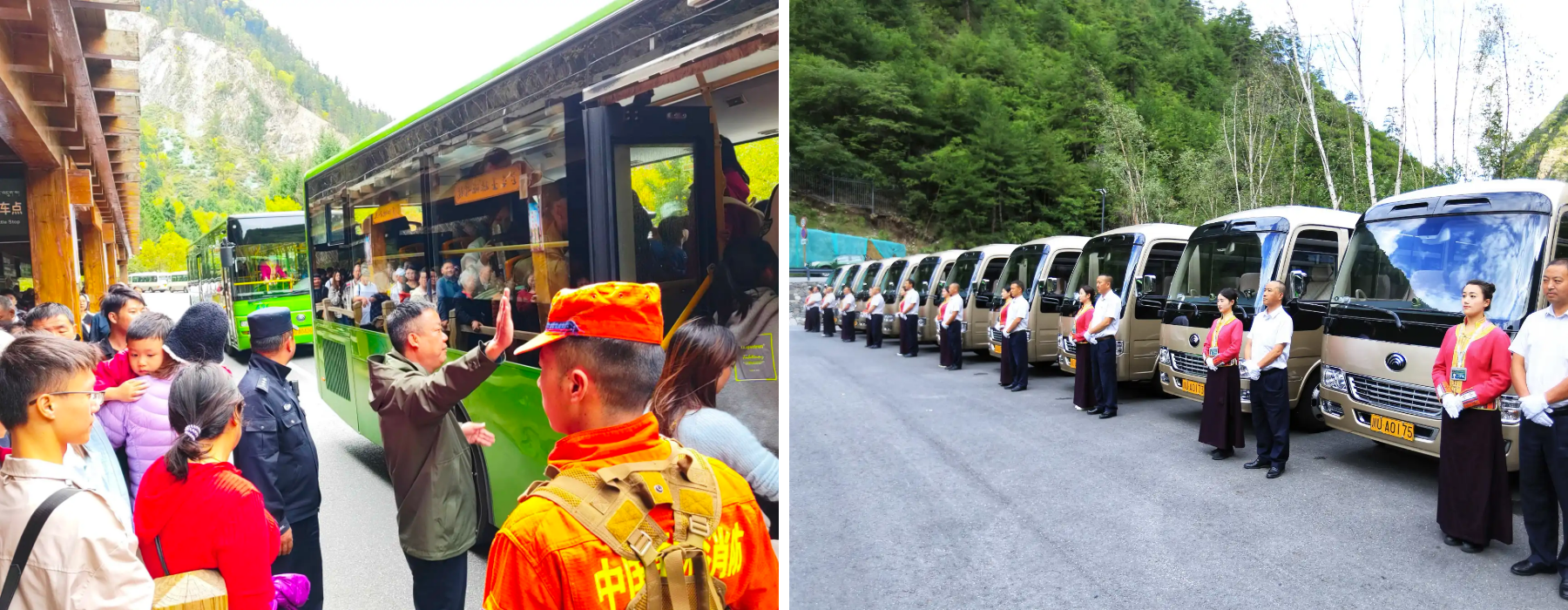 精心服务,多方联动。一直来,九寨沟按照县、局、司、镇多方联动、闭环管理的服务方式,九寨沟管理局、大九旅观光公司全员在岗,九寨沟县相关单位及志愿者力量进行有效补充,公安、交通、市场监管等部门紧密协作形成保障合力,共同确保响应及时,热情周到的服务,与游客及时完成情感共鸣,有效维护九寨沟世界一流旅游景区品牌力量。