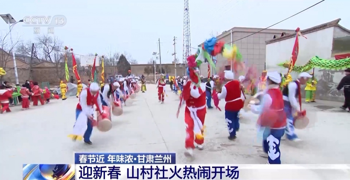 在甘肃兰州榆中县的乡镇村庄,这几天都会有热闹欢腾的社火上演,大家以这种喜庆的方式迎接即将到来的龙年新春。村中的妇女们背起太平鼓,穿上英雄装,鼓点响起,队形变换时而“三羊开泰”、时而“黄河激浪”,铿锵的鼓声打出了浓郁西北风情,气势一点不输男子鼓队。