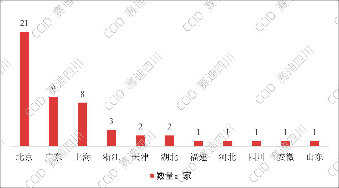 在城市分布方面,北京占有明显领先地位,上海、深圳位列第二梯队,一线城市凭借其研发创新、人才集聚等优势,占据榜单领先位置和大部分席位。在榜单中,北京以中国电信、中国移动等电信运营商以及百度、京东等互联网企业为代表,上海则主要以万国数据、数据港等数据中心企业为代表。