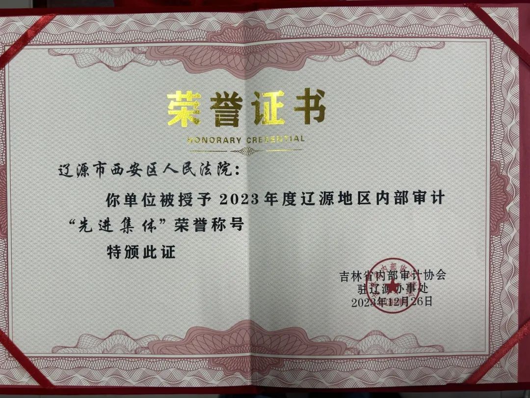 近日,吉林省内部审计协会驻辽源办事处对内部审计工作先进集体和先进个人进行了表彰,西安区人民法院荣获“2023年度辽源地区内部审计先进集体”,办公室主任闵子桐荣获“2023年度辽源地区内部审计先进工作者”荣誉称号。