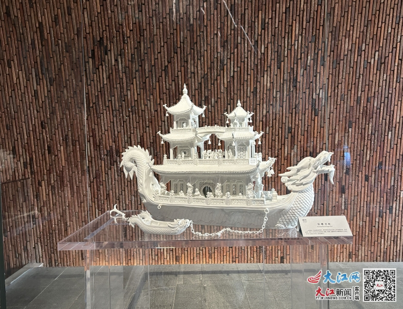 展示于景德镇御窑博物馆的涩胎龙舟瓷雕