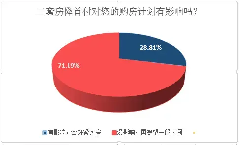 调查结果显示,28.81%的网友会将置业计划提前,71.19%的网友还在观望中。二套房首付比例下调,利好改善型住房市场。公积金首付比例的下调,也能够缓解刚需族买房的压力。业内分析认为,新政实施后对包括西安在内的二三线城市消化库存有较大利好作用。同时也有网友认为,西安房地产市场快要达到饱和状态,购买力疲软,新政的提振作用不会太明显。