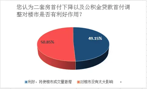 热议多日的二套房首付比例调整政策,在央行评估楼市现状后终于尘埃落定。调查结果显示:49.15%的网友认为新政对楼市有利好作用,将促进楼市成交;50.85%的网友认为政策对楼市影响较小。目前西安各大银行还未接到下调通知,据了解,新政快预计本周内就会在西安落实。