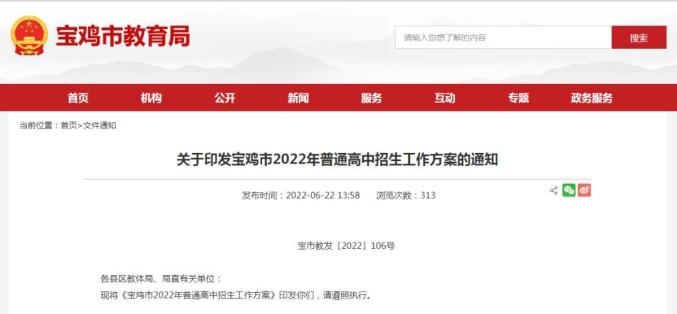 《宝鸡市2022年普通高中招生工作方案》