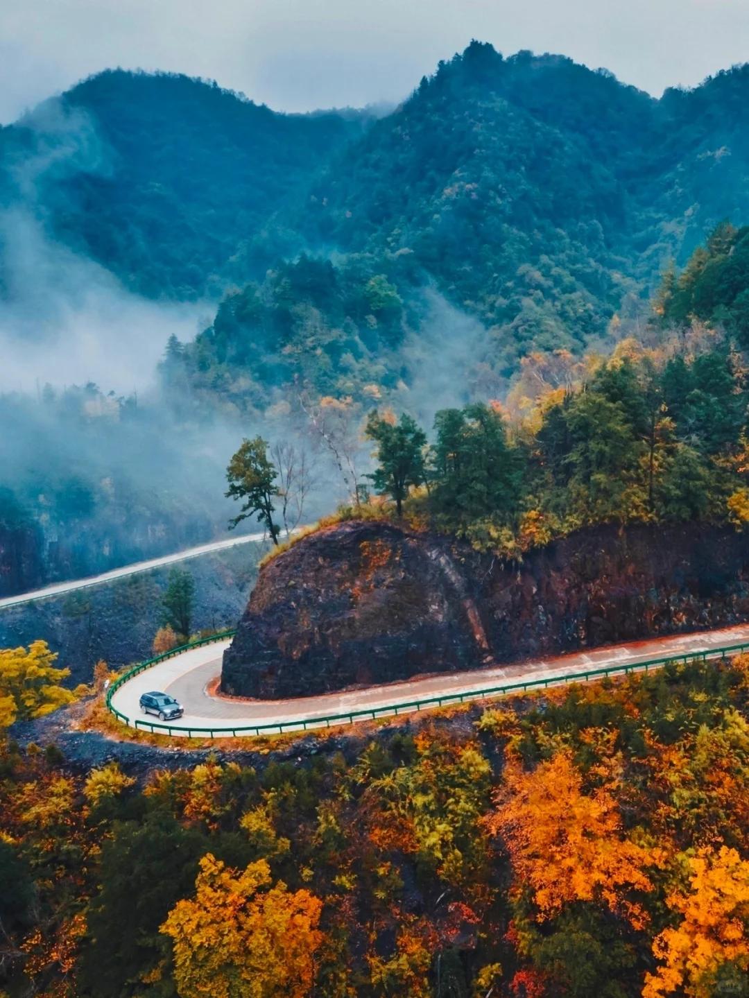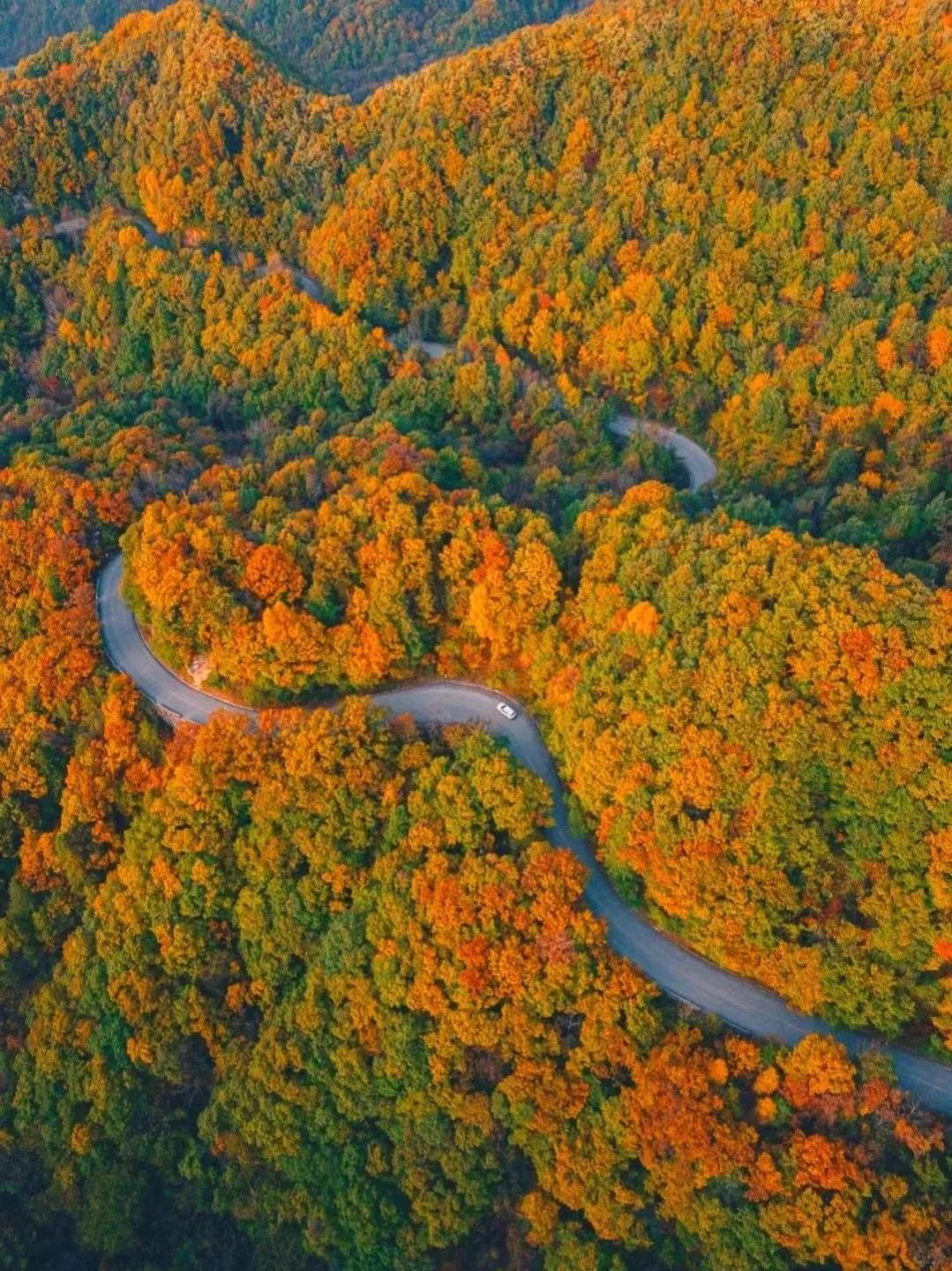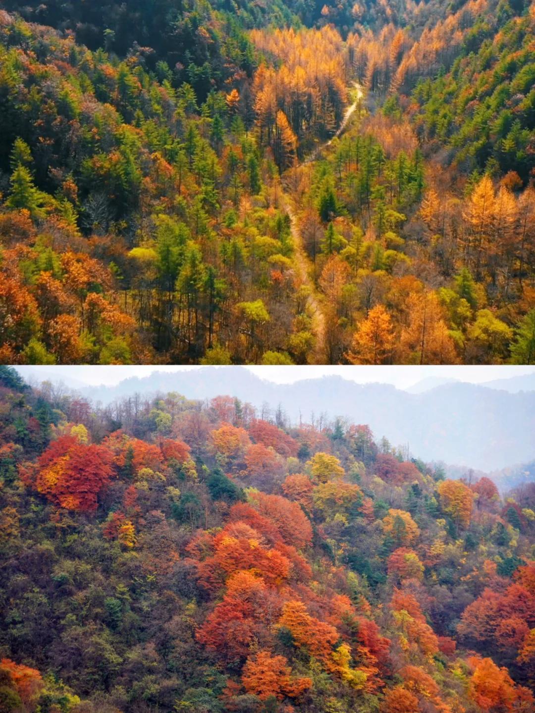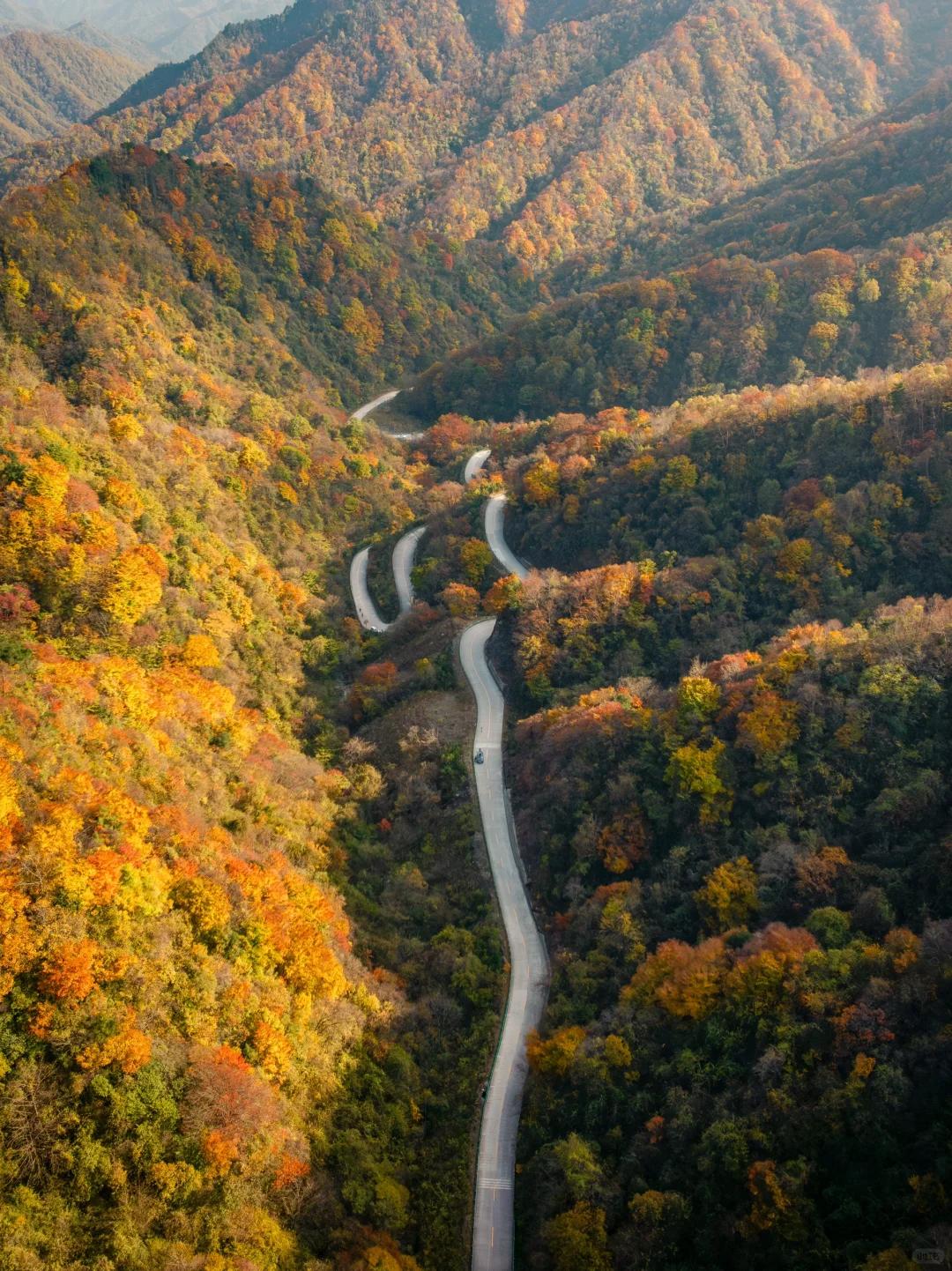 这个坐落在南北交接线上的赏秋自驾天花板,兼具了北方的绚丽多彩,和南方的柔和婉约。