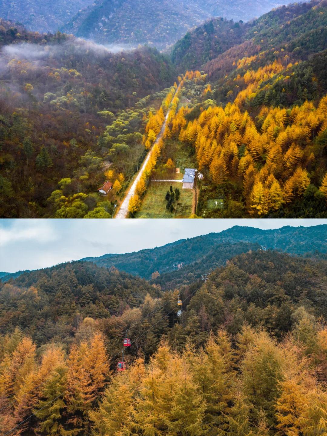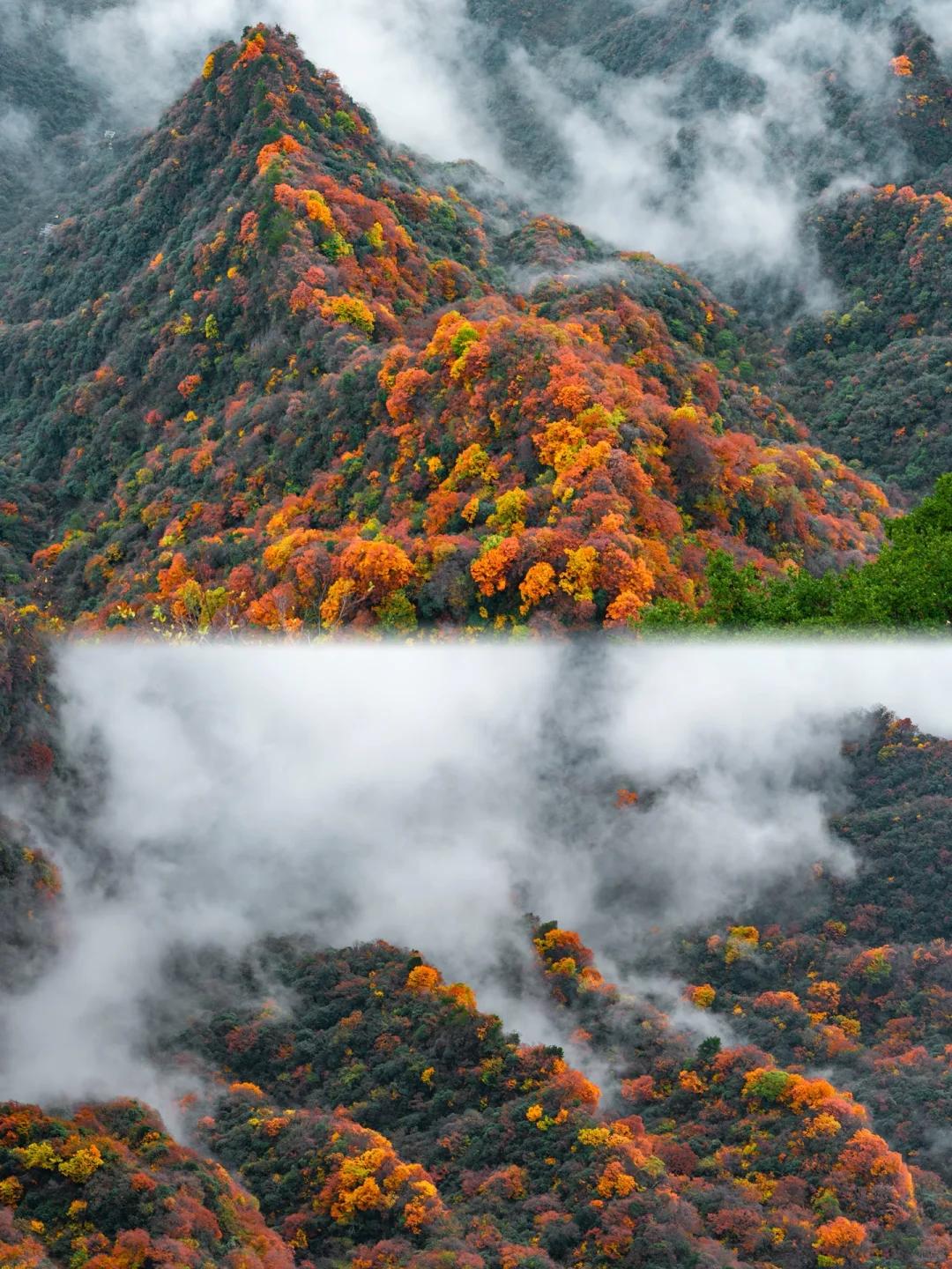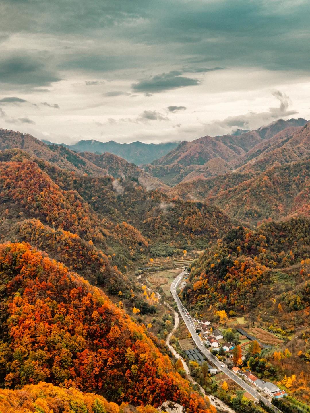 这个坐落在南北交接线上的赏秋自驾天花板,兼具了北方的绚丽多彩,和南方的柔和婉约。