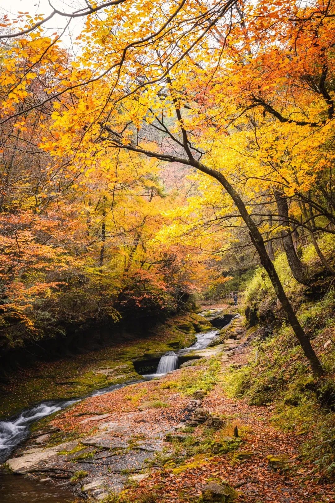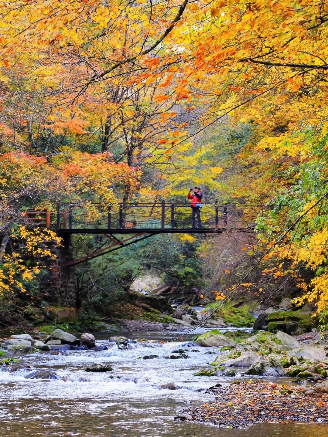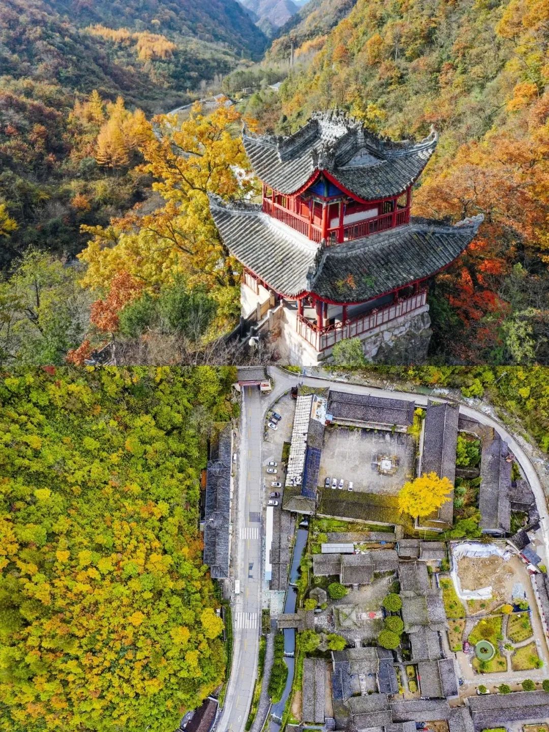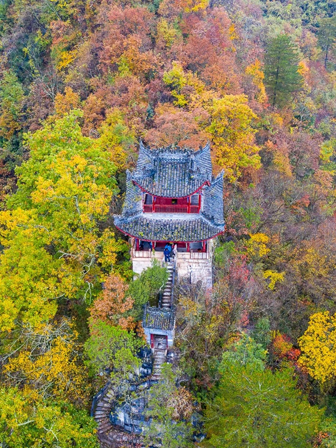 这个坐落在南北交接线上的赏秋自驾天花板,兼具了北方的绚丽多彩,和南方的柔和婉约。