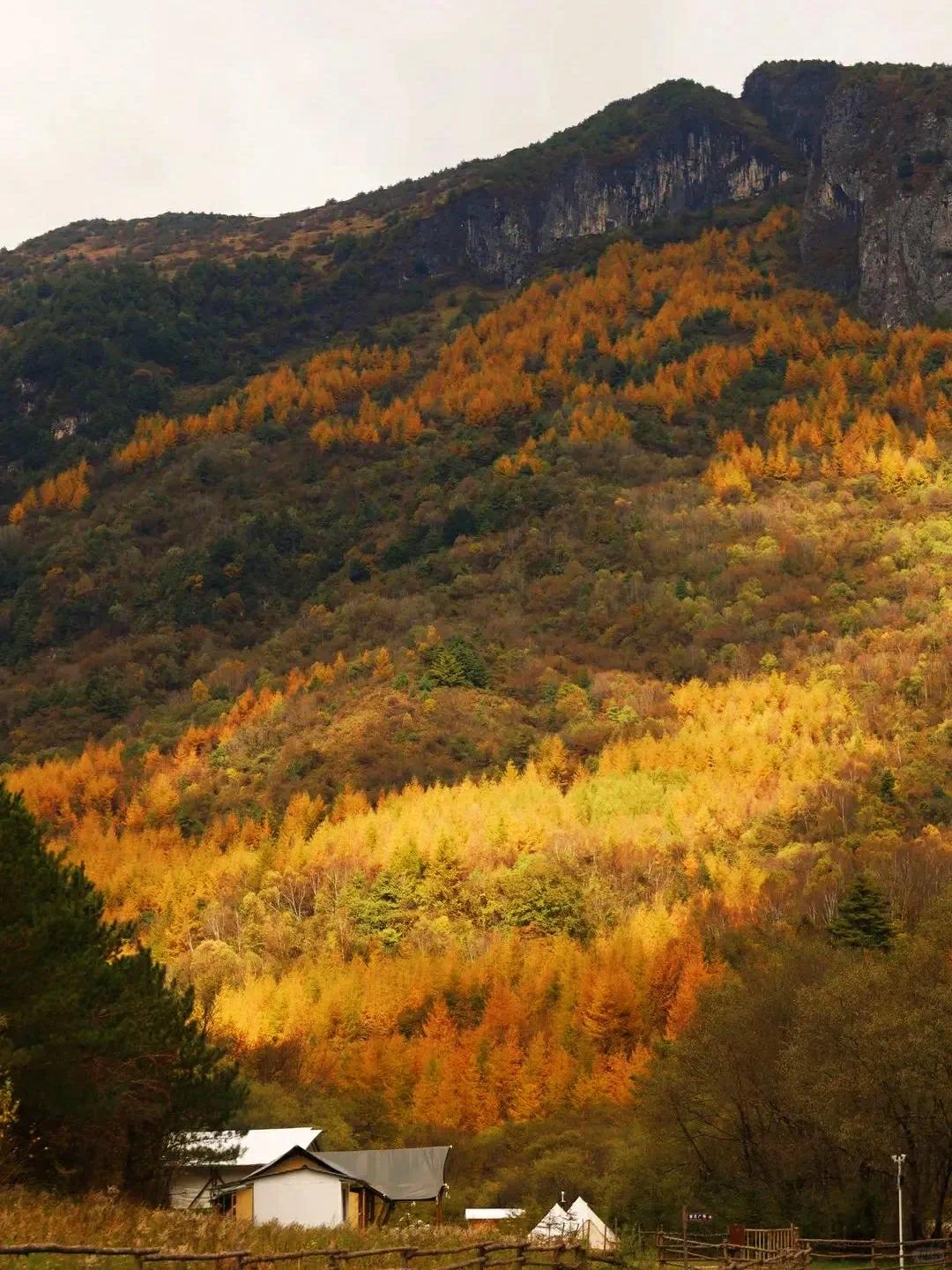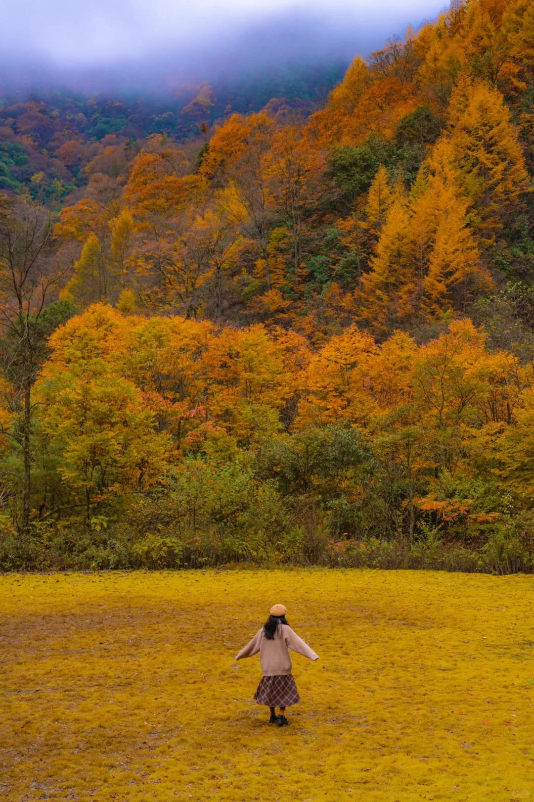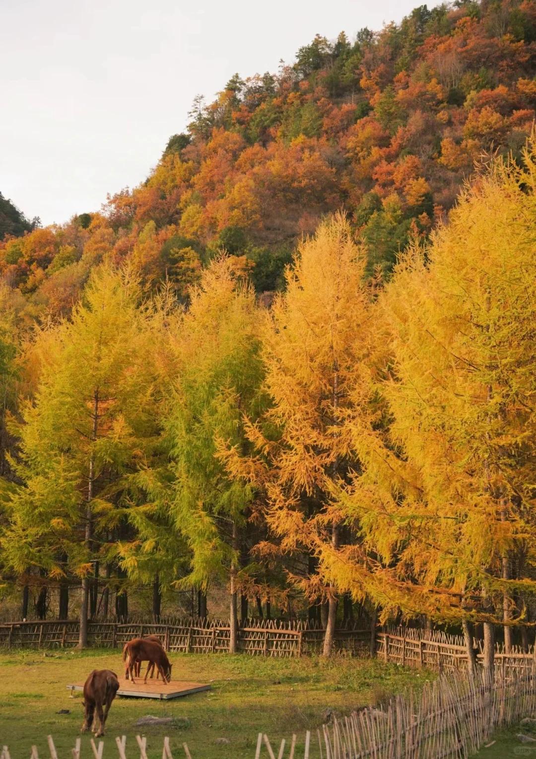 从西安高铁1h直达,从成都高铁2h23mins直达!比起新疆,这里很近,比起西藏,这里很易达,秋色却能相较。