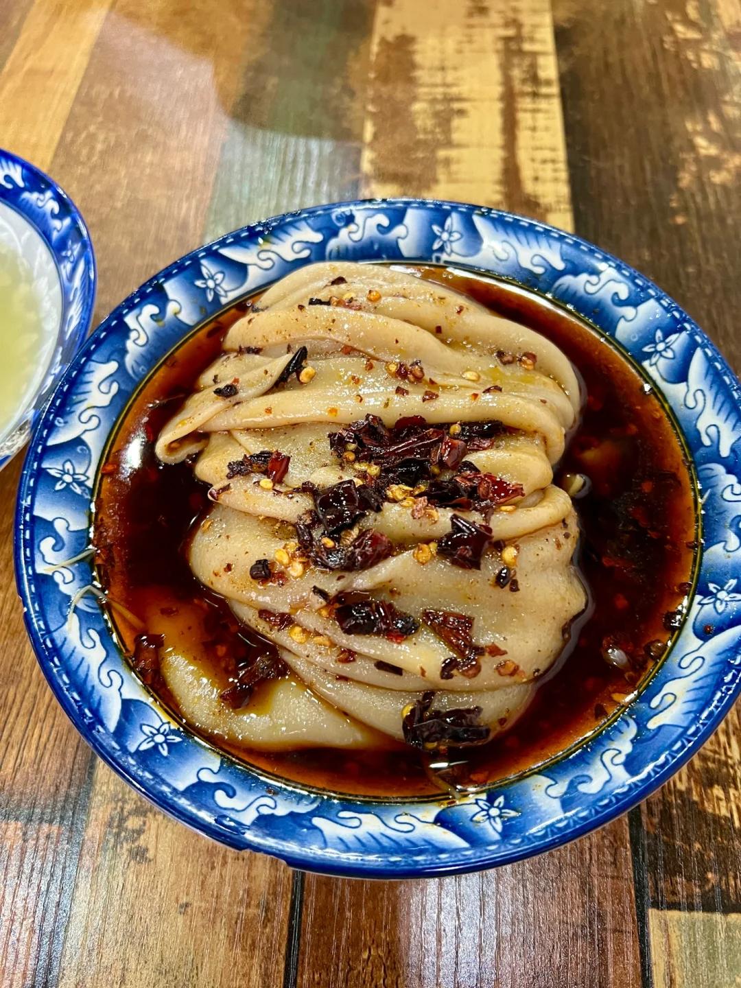 很受当地人欢迎的一家面皮店,开在偏僻的小巷子里,来吃的都是居民,他家的面皮很是筋道,辣椒应该是炸过的,香气扑鼻,又不会辣得烧胃。