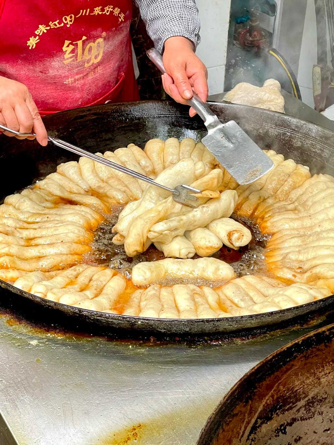 在汉中人的早餐桌上,也少不了锅边油花子,当地人也爱管它叫汉中锅贴,其实有些像是油炸过的大馒头。