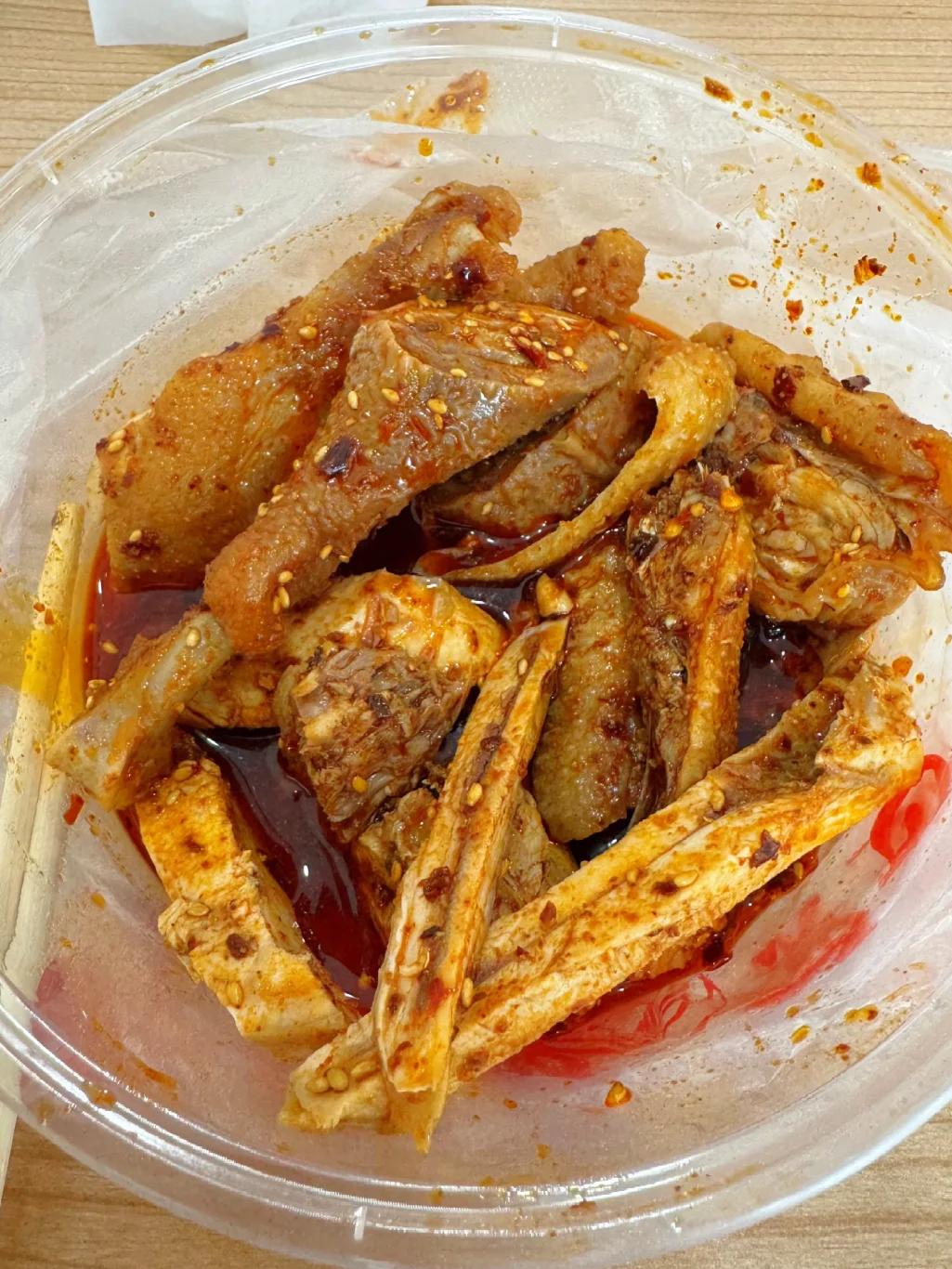 还有真空方便带走,鸡皮爽脆,很有嚼劲,如果很能吃辣,还能让他们加麻加辣。