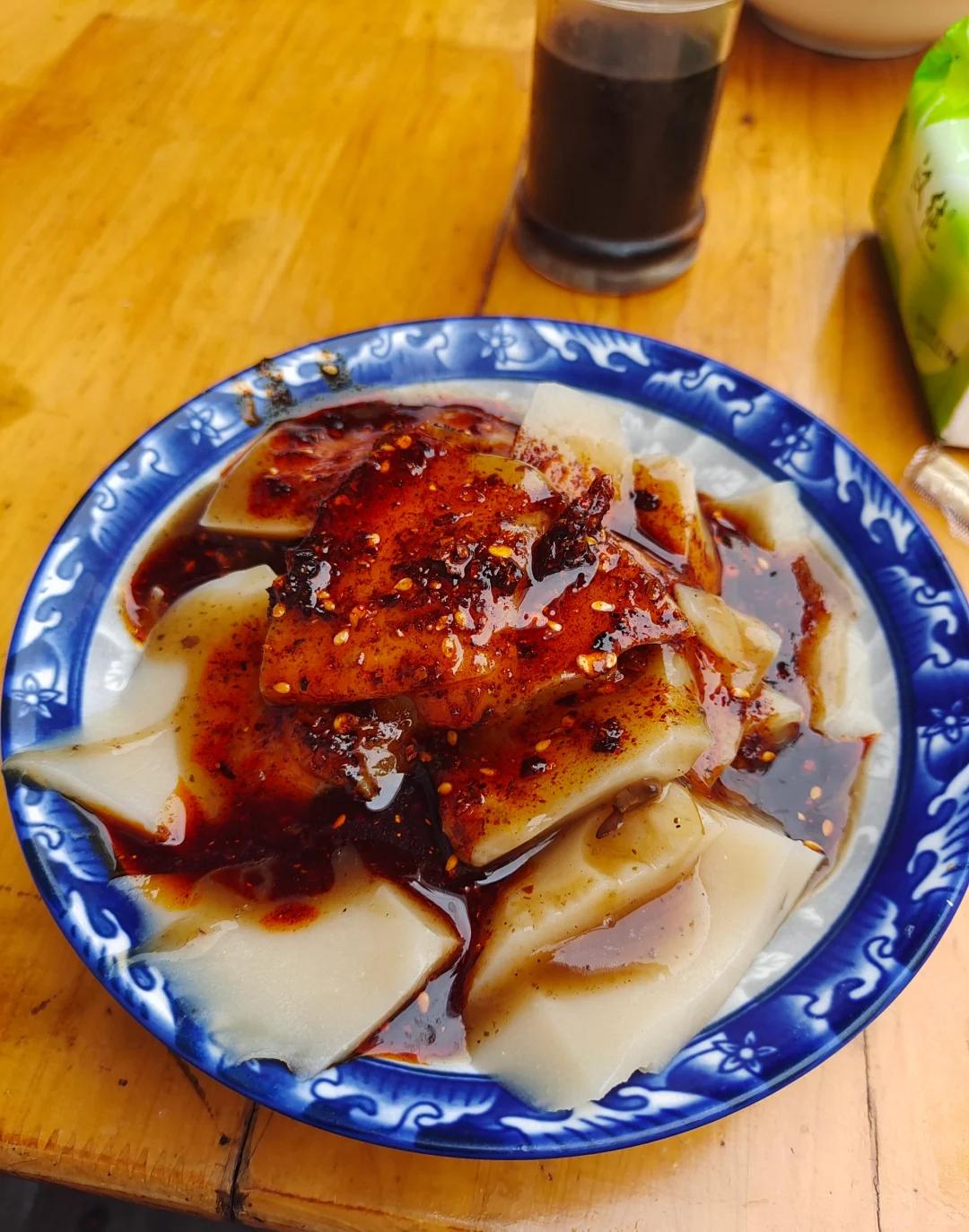 开了好几年的凉粉店,他家的辣椒酱秘方真的很绝,香中带麻,辣而不燥,凉粉也很软糯,胃口不大的小伙伴儿点一碗小份就好。
