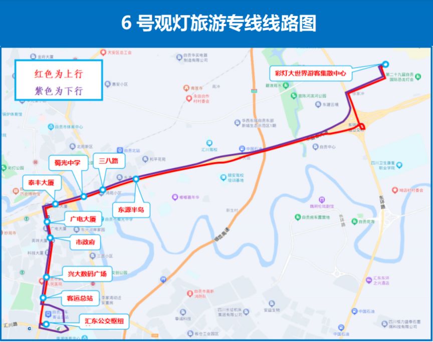 6号线:汇东公交枢纽站↔彩灯大世界旅游集散中心