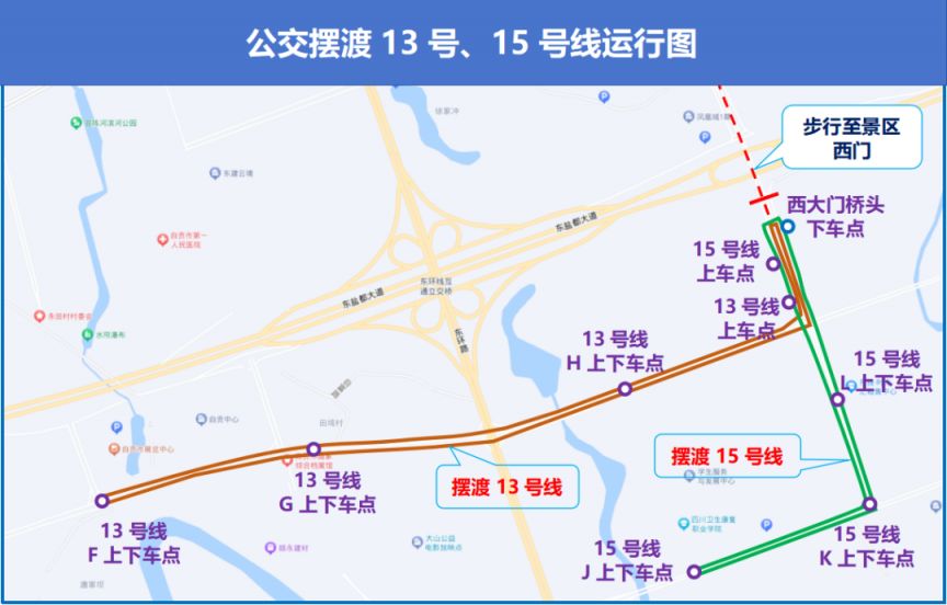 13号线:市档案馆路段↔灯城中街;沿线共设置3个上下车点位;