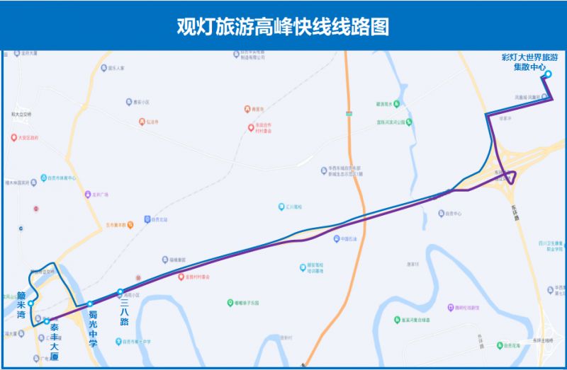 线路一:成都-成泸高速-东环路-中华彩灯大世界