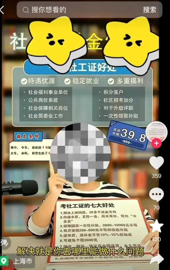 各种培训机构的直播间却在大力宣传考社工证的七大好处,他们的话术大多是就业方向广、稳定、能多领取补贴等。