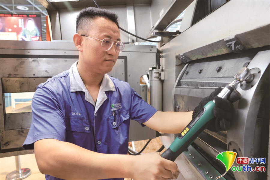 中国青年网讯 宽敞明亮的车间里发出“轰隆隆”的声响,陈思豪正专注地调试着切丝机,旁边不时传来同事学习观摩的赞许声:“真不愧是冠军,这整齐划一的产品看着就达标。”经过陈思豪“稳准快”的操作,机器振槽上顺利地加工出整齐的产品。