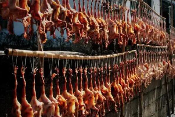 松岗腊鸡是一道因产自深圳市松岗区而得名的腊鸭,是主要选用梧州、土媚、本地等品种鸭进行制作的深圳著名特产美食,并因皮白肉厚、细嫩香口、营养丰富而闻名海内外的深圳特产美食。