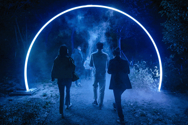 由奥运开闭幕式主创团队操刀制作,结合粒子成像、全息投影、互动捕捉等技术,以富有创意的璀璨光影与实时互动设计,带来一场沉浸式艺术光影秀。