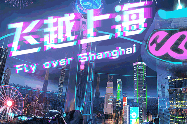 观众戴上虚拟现实眼镜,即可直接通过空中俯视视角观看上海城市景观,身临其境飞越在上海天空。
