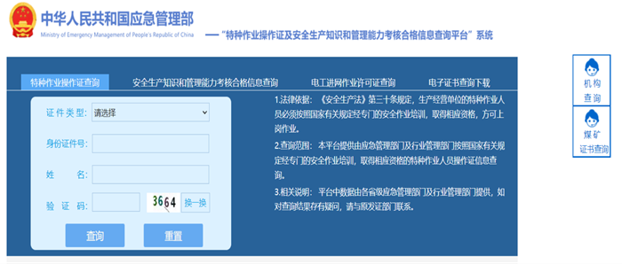 (一)您可登陆中华人民共和国应急管理部“特种作业操作证及安全生产知识和管理能力考核合格信息查询平台”(https://cx.mem.gov.cn/)