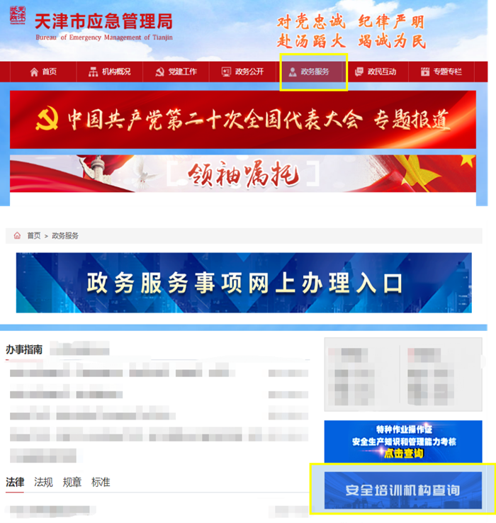 问题4:如何获得电工证?答:想获取电工证,首先您应到安全培训机构参加电工作业人员安全技术培训,完成培训学时后报名参加特种作业考试,考试合格才能取得电工证。问题5:我想参加特种作业安全技术培训,到哪去学习?答:您可以自主选择安全培训机构参加电工作业安全技术培训学习。目前,我市共有安全培训机构69家,在市应急局官网上可以查询。查询方式是登陆“天津市应急管理局”官方网站首页(https://yjgl.tj.gov.cn/)“政务服务”栏,选择“安全培训机构查询”字样蓝色长图,在弹出页面中选择“点击下载附件”,查询各区培训机构。如下图所示: