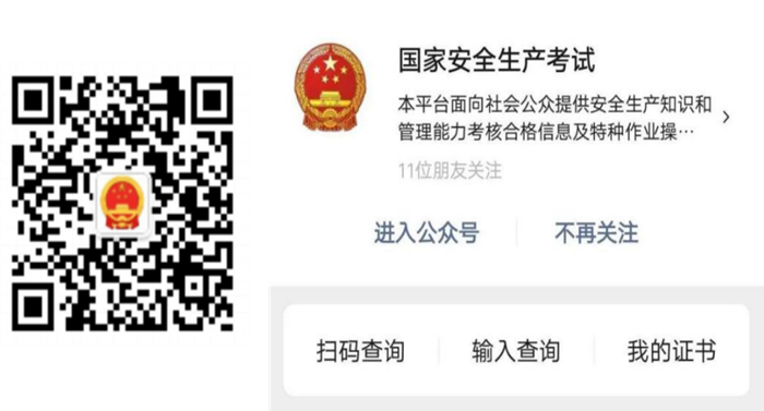 (二)您可以关注“国家安全生产考试”微信公众号,选择“证书查询”,输入本人姓名和身份证号,即可查询到您的证书信息。