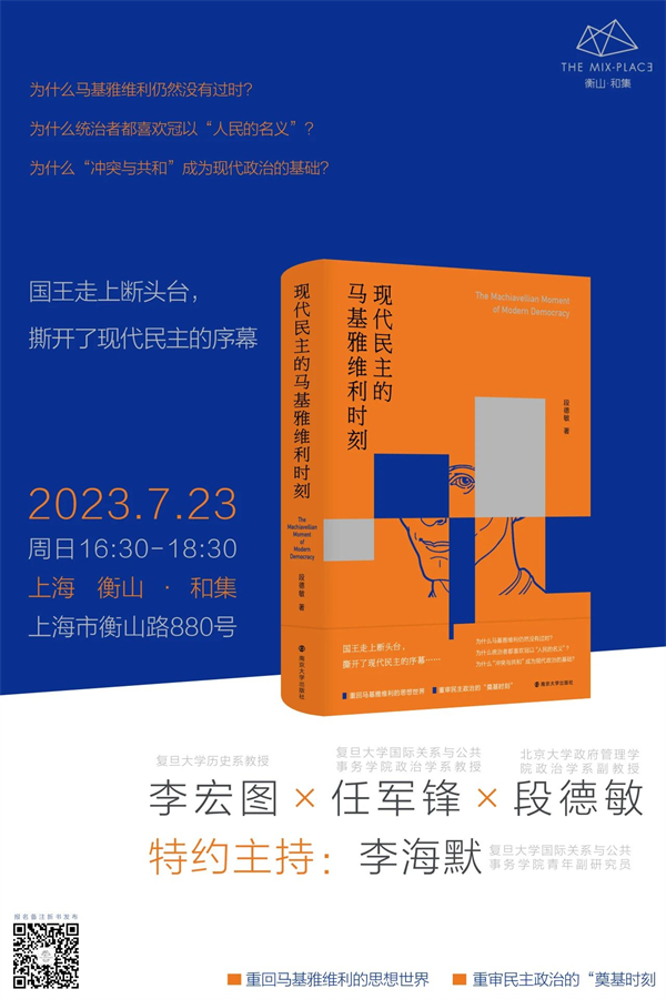 马基雅维利是一位时常为人所援引的思想家,而他的一大半名声跟所谓“马基雅维利主义”有关。7月23日,在衡山·和集,思想史学者李宏图老师、任军锋老师、李海默老师,将与《现代民主的马基雅维利时刻》作者段德敏老师共聚一堂,抽丝剥茧,还原重重透镜之下的马基雅维利和从此出发的时代之思。